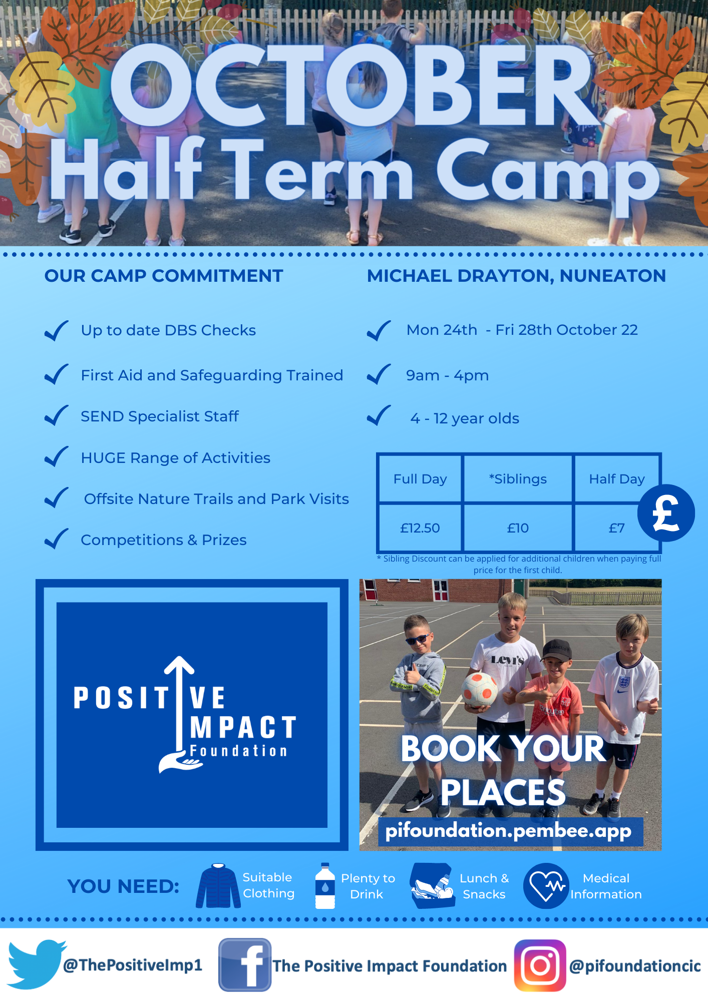 Our amazing Holiday Camps are back for October!